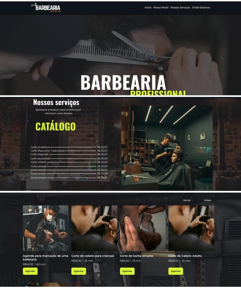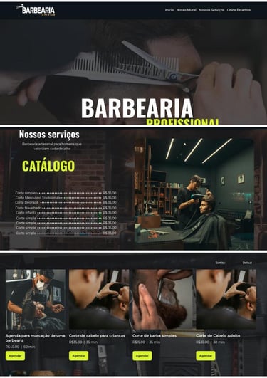 Site criado com foco em agendamento de cortes de cabelo e barba e divulgação do trabalho.