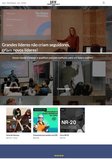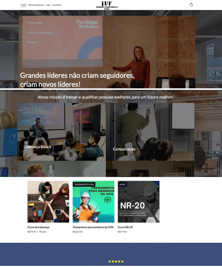 Site focado em venda de treinamentos no formato de entrega via E-mail e agenda on-line de treinamento pratico com foco em desenvolvimento para líderes.
