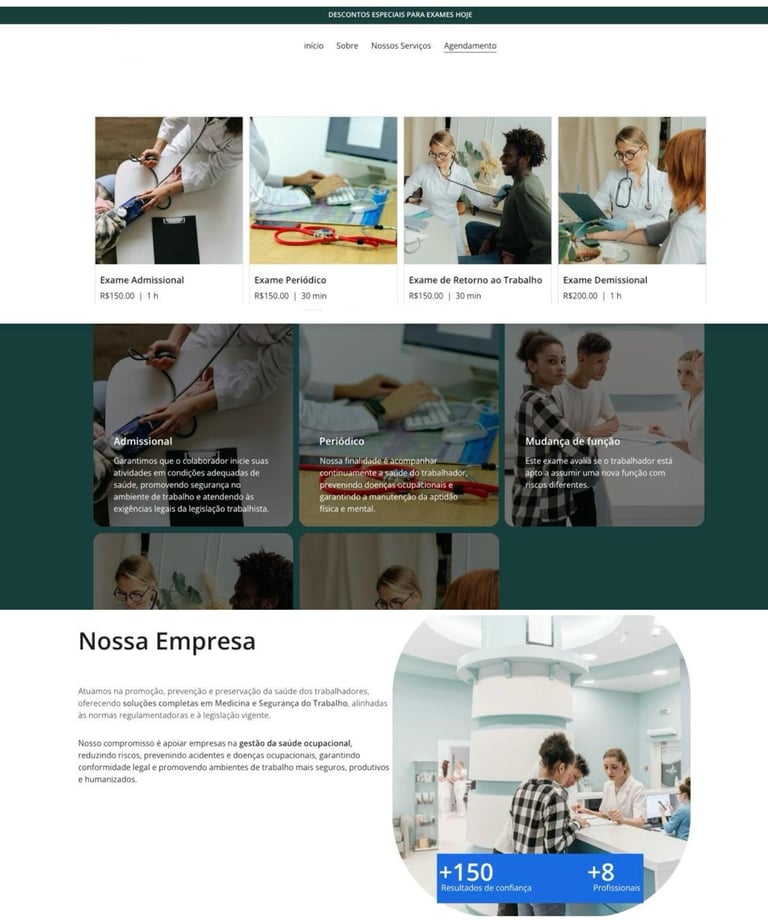 Site com foco em agendamento on-line para atendimentos individual e atendimento personalizado para empresas.